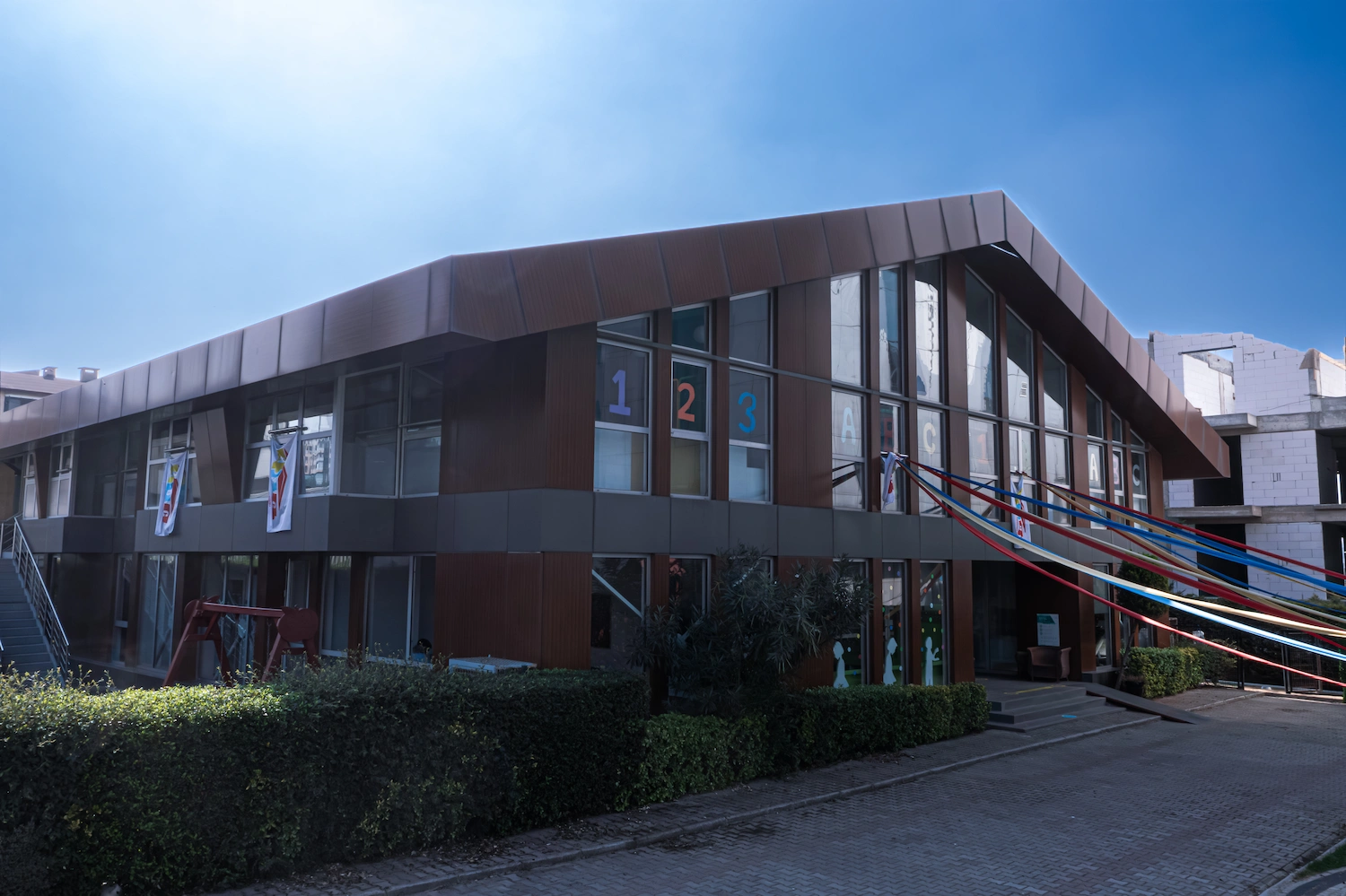 3.000 m² arsa üzerine çelik konstrüksiyon tekniğiyle inşa edilen proje, 2.000 m² kapalı alanı ve 14 sınıflık kapasitesiyle, miniklere mimari açıdan kusursuz, ferah ve son derece güvenli bir eğitim yuvası sağlıyor.